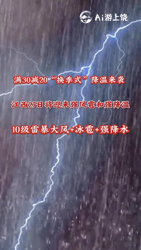 江西27日将迎来强风雹和强降温 10级雷暴大风+冰雪+强降水!